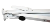 Manual operation. No springs or travel locks to unlock. Just crank it out. For an exceptionally taut canopy, backwind the crank to make your canopy as tight as a drum. There's never a need to re-tension your awning. Even in breezy conditions, the worm gear mechanism will not allow your roller to unwind. When finished using your awning, lower the roller tube, loosen the rafter knobs and slide the rafter arms to the closed position. The crank assembly automatically locks the roller in place. Simple operation. Lightweight. White with white castings.