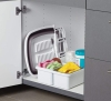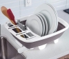 Adjustable drain swivels and collapses to one third its size. Holds up to 10 plates.