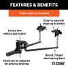 Levels tow vehicle and trailer by redistributing a portion of the tongue weight. Grease zerk fitting provides easy, continuous lubrication (grease must be applied to zerk in order to lubricate). Equipped with round, forged steel spring bars for reliable strength. Heavy-duty, fabricated head can be adjusted for precise leveling. Features built-in sway control attachment tabs. 2" shank can be flipped to provide necessary drop or rise. 2-1/2" x 2-1/2" WD replacement shank also available. Hookup brackets and lift handle allow for easy leveraging of spring bars. Protected by a highly durable carbide powder coat finish. Limited lifetime warranty (one-year finish, one-year parts).